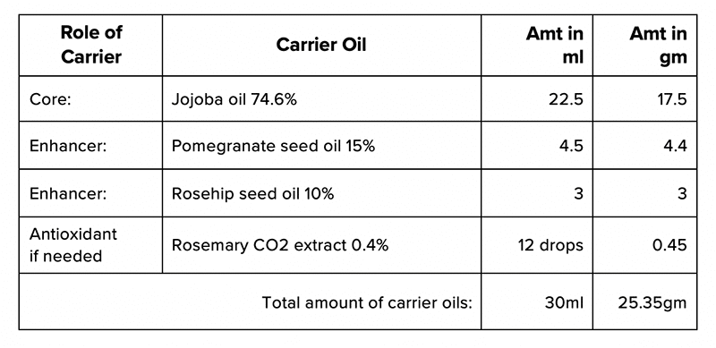 You now have the percentage for each essential oil which make up the 30 drops for the 5% dilution. To obtain the actual number of drops you would then multiply the percentage for each essential oil by 30.