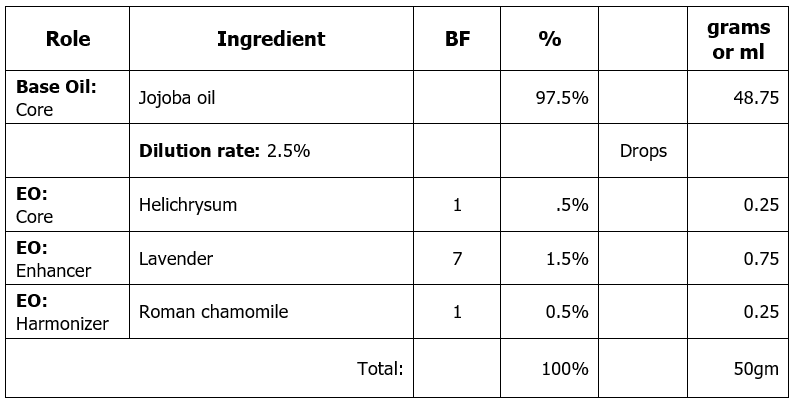 Helichrysum | 5 | .3125 * 30 = 9 drops |