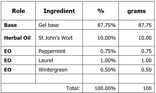 If you find that you are using an essential oil for which no blending factor has been given, then you can use the above exercise to figure it out. Often it is best to compare the unknown essential oil to an essential oil from the same botanical family. For instance, the blending factor for Fir (Abies alba) has not been provided. Fir belongs in the same family as Pine (Pinus sylvestris) and Cedarwood (Cedrus atlantica), both of which have known blending factors.