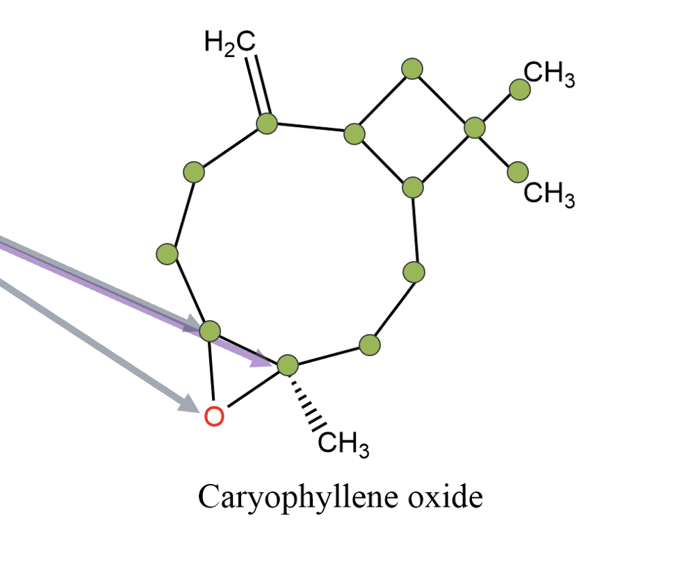 - β-caryophyllene oxide – contains an epoxide ring (3-membered)